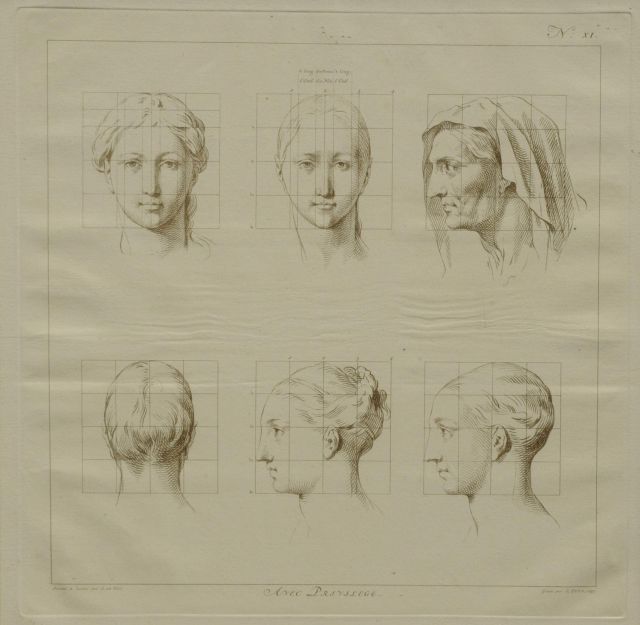 Jacob de Wit | De ideale proporties van het menselijk lichaam - Hoofd vrouw (no.XI), gravure op papier, 40,0 x 40,0 cm