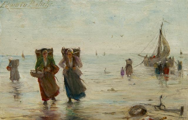 Edward Portielje | Vissersvrouwen op het strand (pendant van 17477), olieverf op doek, 9,4 x 14,7 cm, gesigneerd l.b.