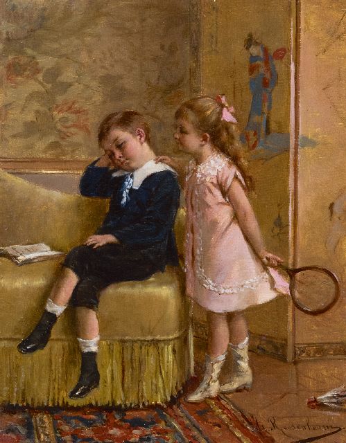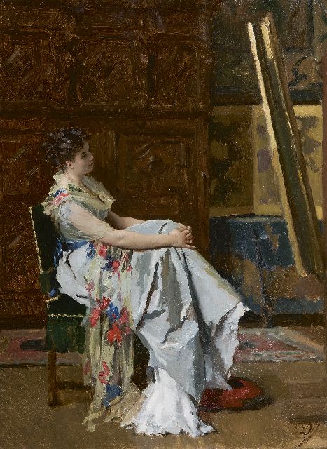 Edouard Hamman | In gedachten, olieverf op doek, 56,1 x 42,4 cm, gesigneerd r.b.