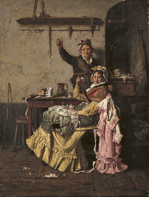 Albert Roosenboom | Na het feestje (net als vader en moeder), olieverf op doek, 34,2 x 26,4 cm, gesigneerd l.o. en verso gedateerd 1882