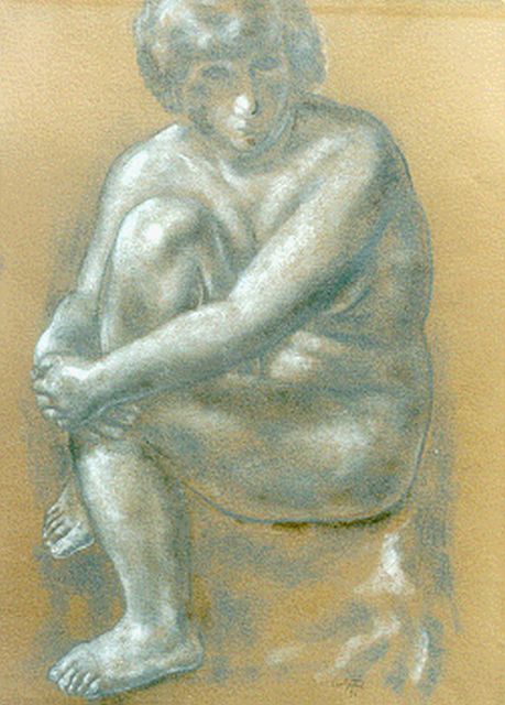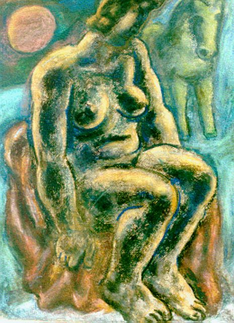 Leo Gestel | Zittende vrouw met paard, pastel op papier, 63,0 x 48,0 cm, gesigneerd l.o. en gedateerd '32