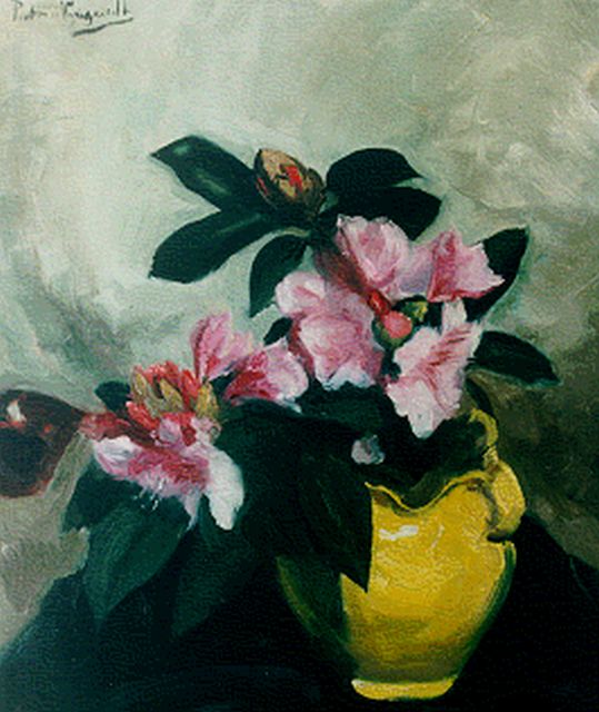 Piet van Wijngaerdt | Rododendrons in een vaas, olieverf op doek, 79,8 x 67,6 cm, gesigneerd l.b.