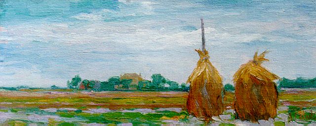 Arnout Colnot | Korenschoven, olieverf op doek op paneel, 16,7 x 41,1 cm, gesigneerd r.o.