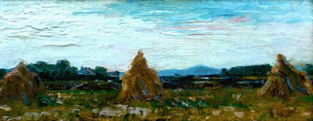 Arnout Colnot | Korenschoven in een landschap, olieverf op doek op paneel, 16,7 x 41,1 cm, gesigneerd r.o.