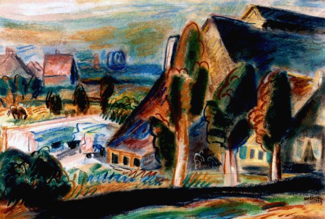 Leo Gestel | Voorjaar: boerderij te Eemnes, pastel op papier, 61,0 x 76,5 cm, gesigneerd l.o. en gedateerd '39