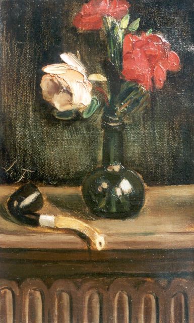 Henri Le Fauconnier | Stilleven met bloemen en pijp, olieverf op doek, 51,2 x 30,7 cm, gesigneerd l.m. met initialen