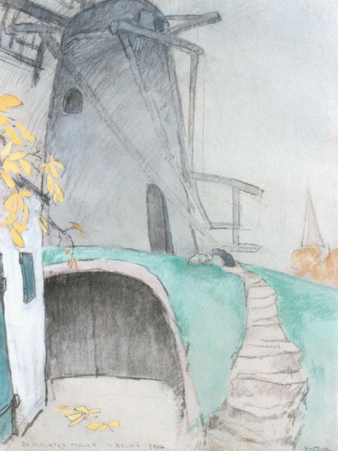 Leo Gestel | De verlaten molen in België, zwart krijt, aquarel en pastel op papier, 51,0 x 38,5 cm, gesigneerd r.o. en gedateerd 1914