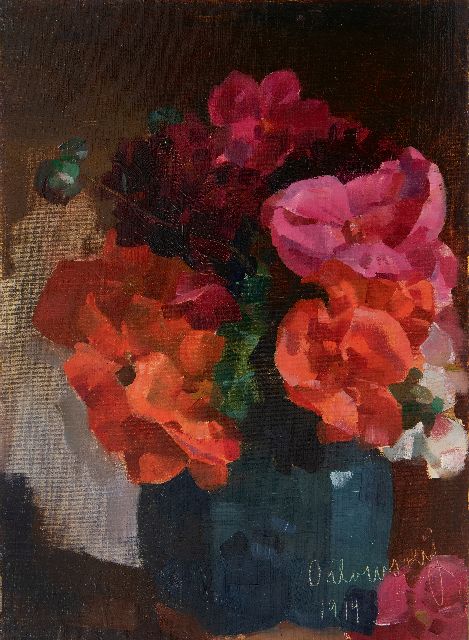 Eugen Orlowsky | Bloemstilleven, olieverf op doek op board op paneel, 49,1 x 36,2 cm, gesigneerd r.o. en gedateerd 1914