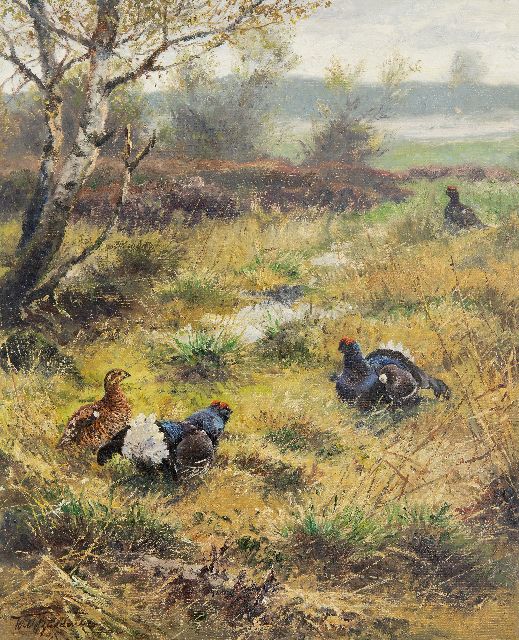 Wilhelm Buddenberg | Korhoenders op de hei, olieverf op doek, 50,1 x 40,0 cm, gesigneerd l.o.