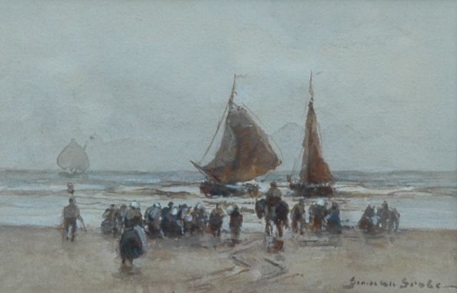 German Grobe | De terugkeer van de vloot, aquarel op papier, 9,5 x 14,0 cm, gesigneerd r.o.