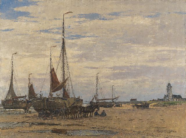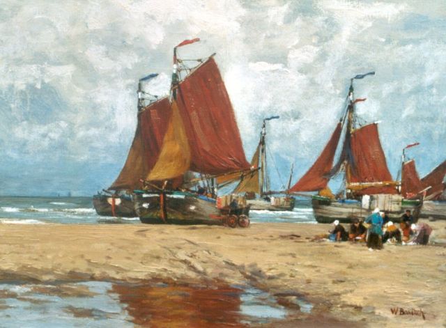 Wilhem Hambüchen | Haringvissers op het strand, olieverf op doek, 66,6 x 95,7 cm, gesigneerd r.o.