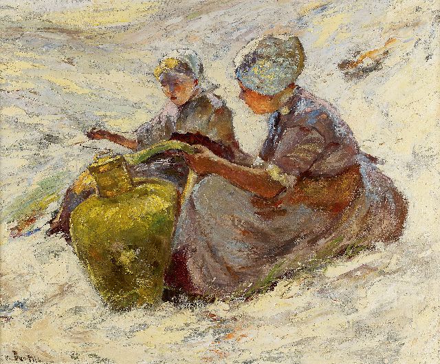 Hans von Bartels | Twee vissersvrouwen in de duinen, olieverf op doek, 50,2 x 59,9 cm, gesigneerd l.o.