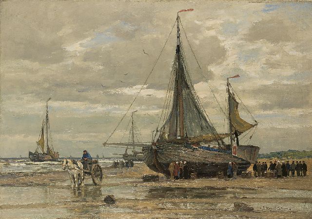 Wilhem Hambüchen | Het uitladen van de vangst, olieverf op doek, 59,8 x 80,4 cm, gesigneerd l.o.