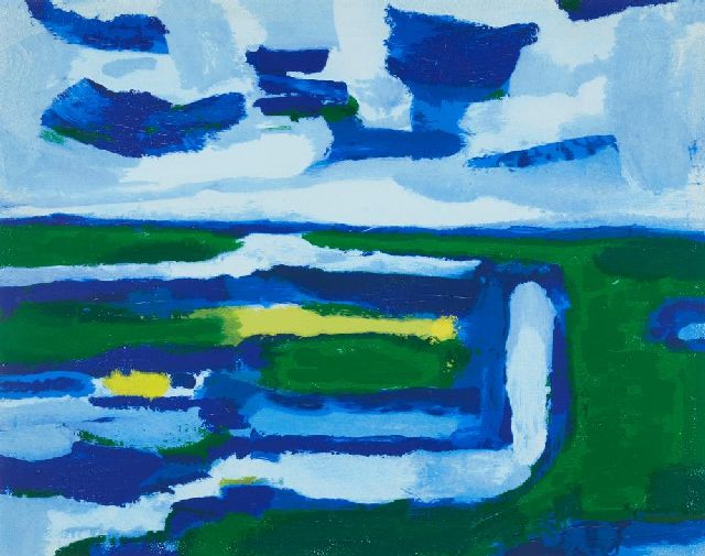 Gerrit Benner | Fries landschap, zeefdruk, 41,8 x 52,8 cm, gesigneerd r.o. (in potlood) en te dateren ca. 1980