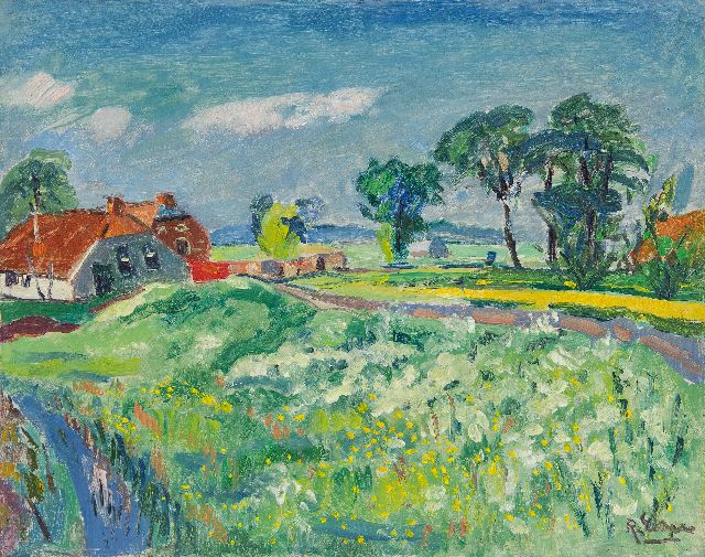 Ruurd Elzer | Gronings landschap, olieverf op doek, 40,2 x 50,2 cm, gesigneerd r.o.