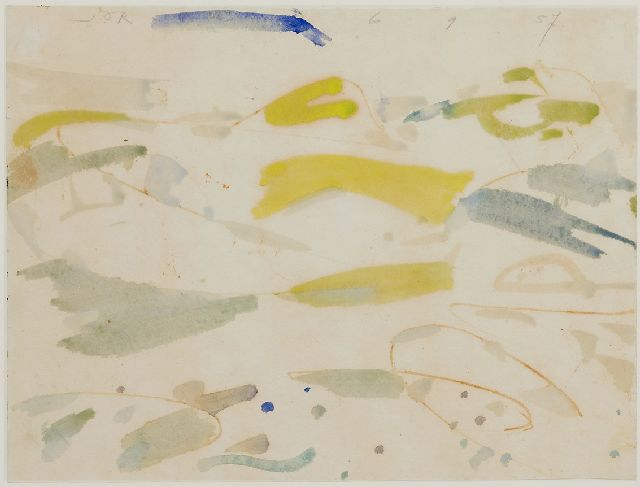 Jan Jordens | Schiermonnikoog, aquarel en ecoline op papier, 23,6 x 31,1 cm, gesigneerd l.b. en gedateerd 6 9 57