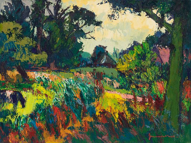 Jannes de Vries | Voorjaar in Altdorf Hagenhausen, Beieren, olieverf op doek, 80,5 x 90,0 cm, gesigneerd l.o. en gedateerd '74