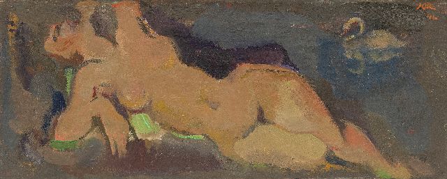 Jan Jordens | Liggend naakt (Leda en de zwaan), olieverf op doek, 20,9 x 50,6 cm, gesigneerd r.b. en gedateerd '42