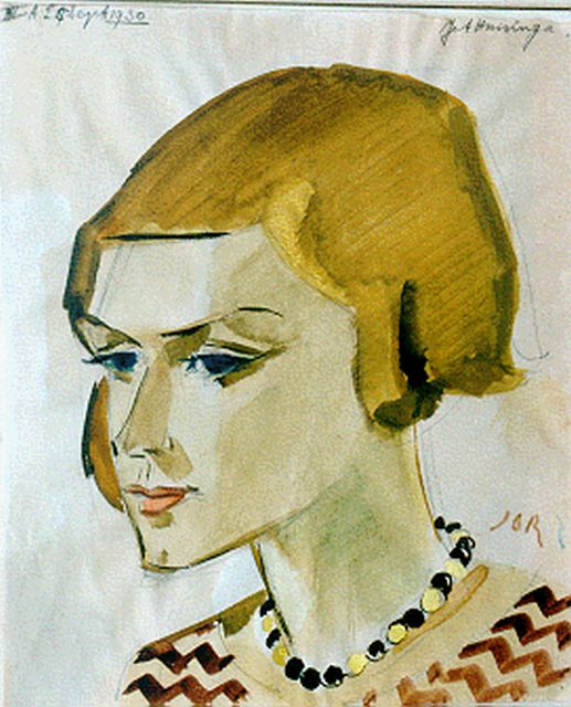 Jan Jordens | Portret van Jet Huisinga, krijt en aquarel op papier, 28,9 x 23,8 cm, gesigneerd r.o. mon en gedateerd 25 sept 1930