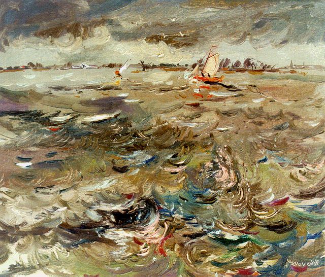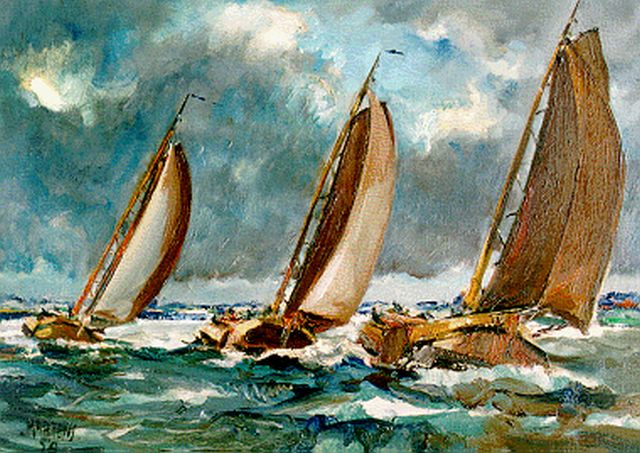 George Martens | Skûtsjesilen, Pikmeer, olieverf op doek, 50,1 x 70,0 cm, gesigneerd l.o. en gedateerd '54