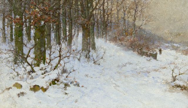 Willem Hendrik Eickelberg | Wandelend figuurtje in besneeuwd landschap, olieverf op doek, 59,8 x 102,2 cm, zonder lijst