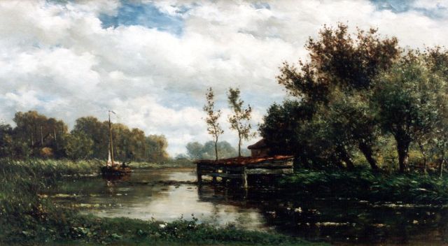 Jan Hendrik Weissenbruch | Boerderij aan de vaart in polderlandschap, papier op doek, 30,6 x 42,6 cm, gesigneerd r.o.