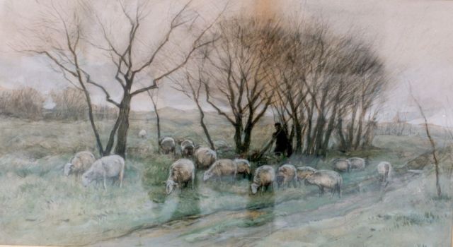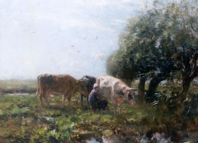 Willem Maris | Melktijd, olieverf op doek, 75,0 x 100,5 cm, gesigneerd l.o.