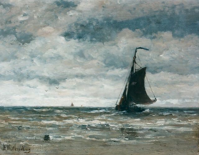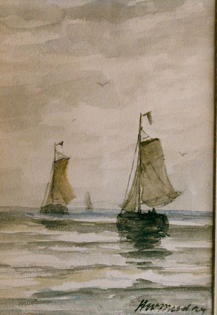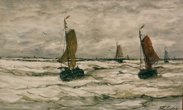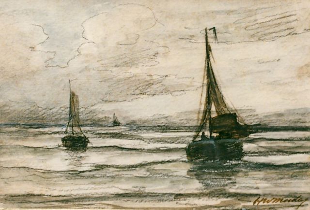 Hendrik Willem Mesdag | Bomschuiten op zee, potlood en aquarel op papier, 13,5 x 19,5 cm, gesigneerd r.o.