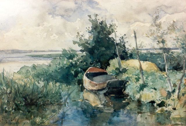 Willem Roelofs | Roeiboot in poldervaart, aquarel op papier, 16,0 x 23,0 cm, gesigneerd l.o.