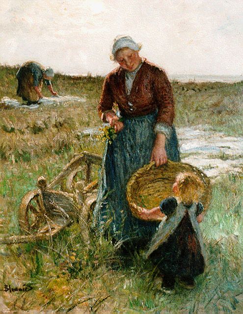 Bernard Blommers | Op de bleek, olieverf op doek, 116,0 x 94,0 cm, gesigneerd l.o.