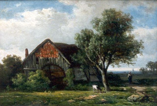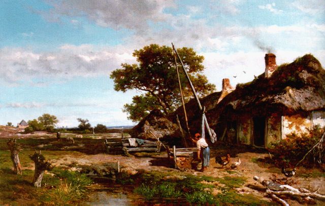 Willem Roelofs | Bij de put op boerenerf, olieverf op doek op paneel, 42,5 x 66,0 cm, gesigneerd l.o. en gedateerd 1855