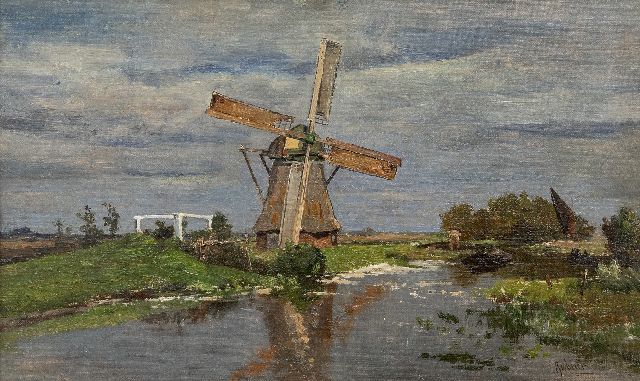 Constan Gabriel | Molen bij Giethoorn, olieverf op doek op paneel, 32,2 x 54,2 cm, gesigneerd r.o.