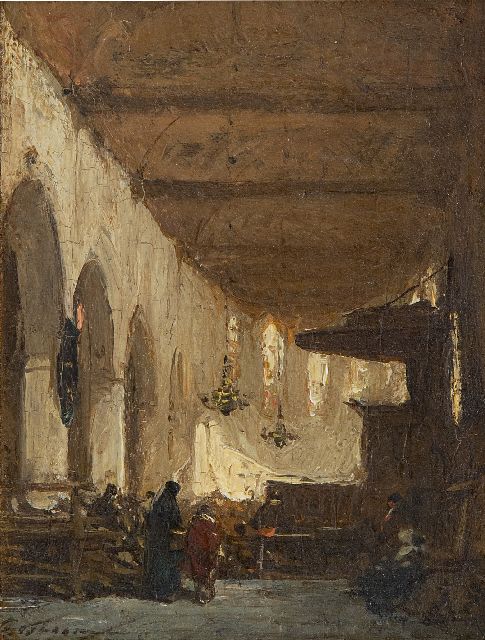 Kerkinterieur met figuren
