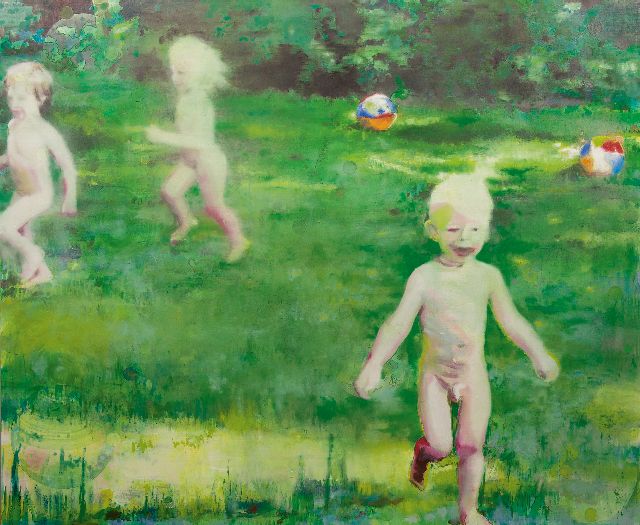 Katrin Hoffert | Ivan, Zara + Edgar (der Garten), olieverf op doek, 145,5 x 175,1 cm, gesigneerd verso en verso gedateerd 2003