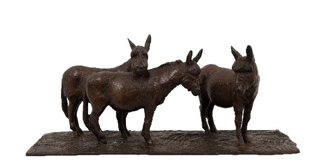 Loek Bos | Drie ezeltjes, brons, 17,0 x 42,0 cm, gesigneerd op de onderkant en gedateerd 2012