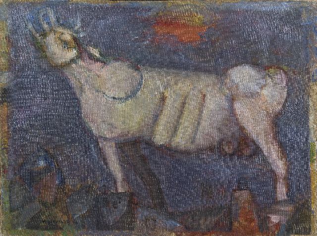 Rudi Bierman | Brullende stier, olieverf op doek, 60,5 x 80,5 cm, gesigneerd l.o. + verso en gedateerd '52, zonder lijst