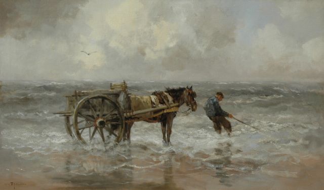 Louis Hartz | Schelpenvisser, olieverf op doek, 33,5 x 41,0 cm, gesigneerd l.o.