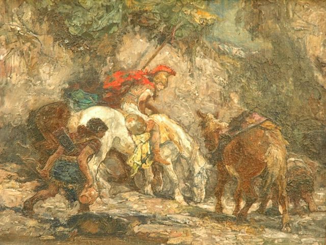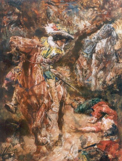 Jacob Hendrik Geerlings | Cavalerie, olieverf op doek, 48,6 x 64,5 cm, gesigneerd r.o.