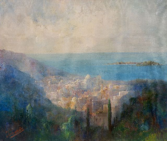 Reinier Sybrand Bakels | Winters gezicht in Amersfoort met de Onze Lieve Vrouwetoren, olieverf op doek, 91,8 x 131,8 cm, gesigneerd r.o. en te dateren ca. 1920