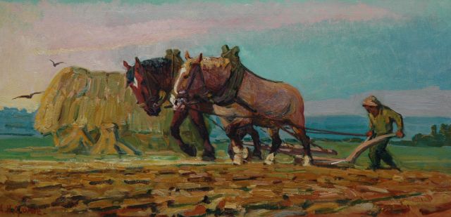 Herman Gouwe | Ploegende paarden, olieverf op doek, 74,5 x 61,5 cm, gesigneerd r.o. en te dateren ca. 1923