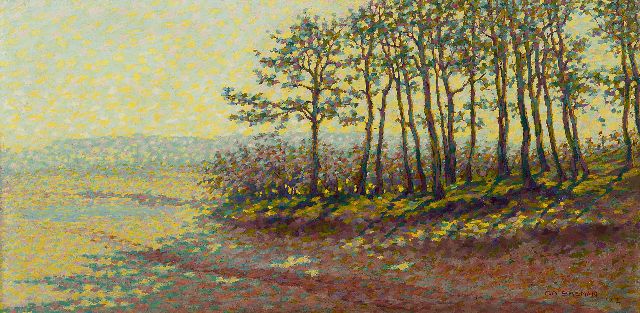 Jan Adam Zandleven | Zonovergoten bosgezicht, olieverf op doek op schildersboard, 41,0 x 32,0 cm, gesigneerd l.o. en gedateerd 1914