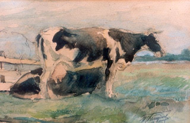 Herman Kruyder | Melkvee in de wei, aquarel op papier, 14,0 x 21,0 cm, gesigneerd r.o.
