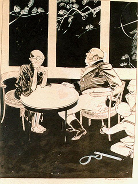 Herman Moerkerk | De pastoor en de directrice, gouache en potlood op papier, 25,6 x 34,6 cm, gesigneerd r.o.