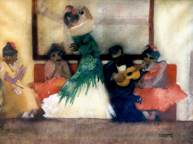 Piet van der Hem | Flamingo dansers, aquarel op papier, 50,0 x 64,0 cm, gesigneerd r.o. en gedateerd '14