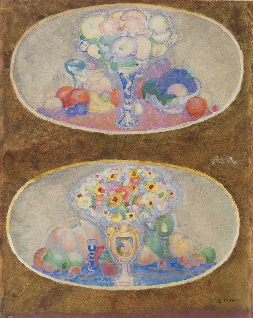 Leo Gestel | Medaillons met bloemstilleven, aquarel op papier, 28,8 x 22,9 cm, gesigneerd r.o.
