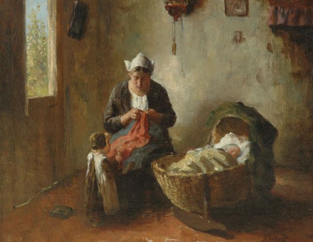 Bernard Pothast | De trots van de familie, olieverf op doek, 32,2 x 40,3 cm, gesigneerd r.o.