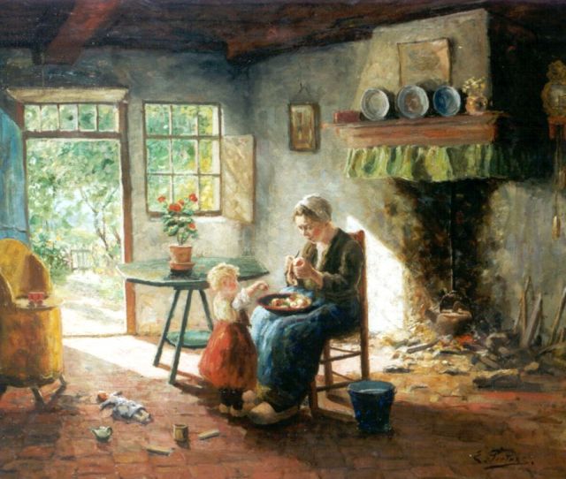 Evert Pieters | Moeders hulp, olieverf op doek, 79,0 x 91,7 cm, gesigneerd r.o.