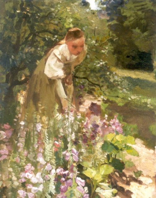 Evert Pieters | In de tuin, olieverf op doek, 32,2 x 40,2 cm, gesigneerd r.o.