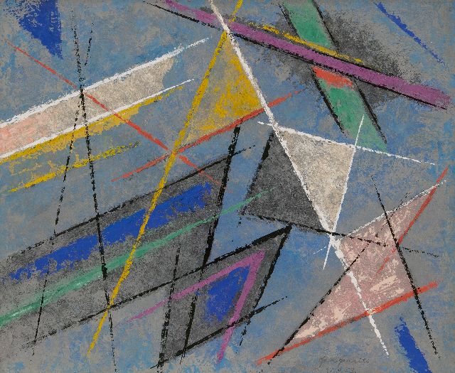 Ger Gerrits | Compositie met driehoeken, pastel en gouache op papier, 42,0 x 53,0 cm, gesigneerd r.o. en gedateerd 27.8.53.