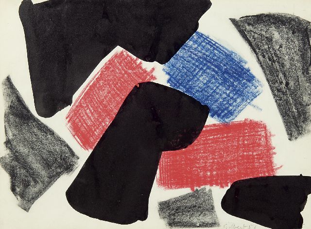 Stephen Gilbert | Untitled, inkt, waskrijt en zwart krijt op papier, 27,8 x 38,0 cm, gesigneerd r.o. en gedateerd '51